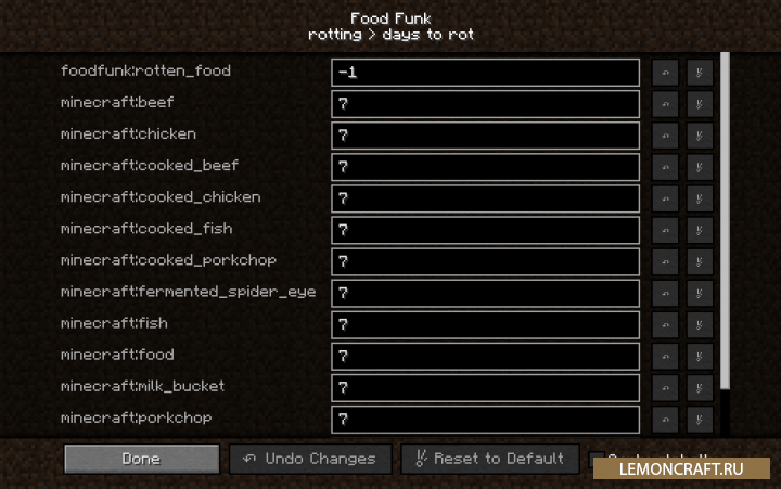 Мод на портящиеся продукты Food Funk [1.12.2]